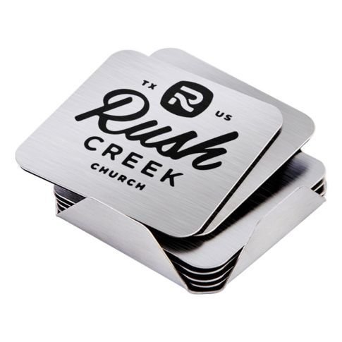 This stylish 6 piece custom coaster set with stand will definitely be a great conversation piece. It features slate coasters with 4 pads on the bottom to protect table tops and bars.