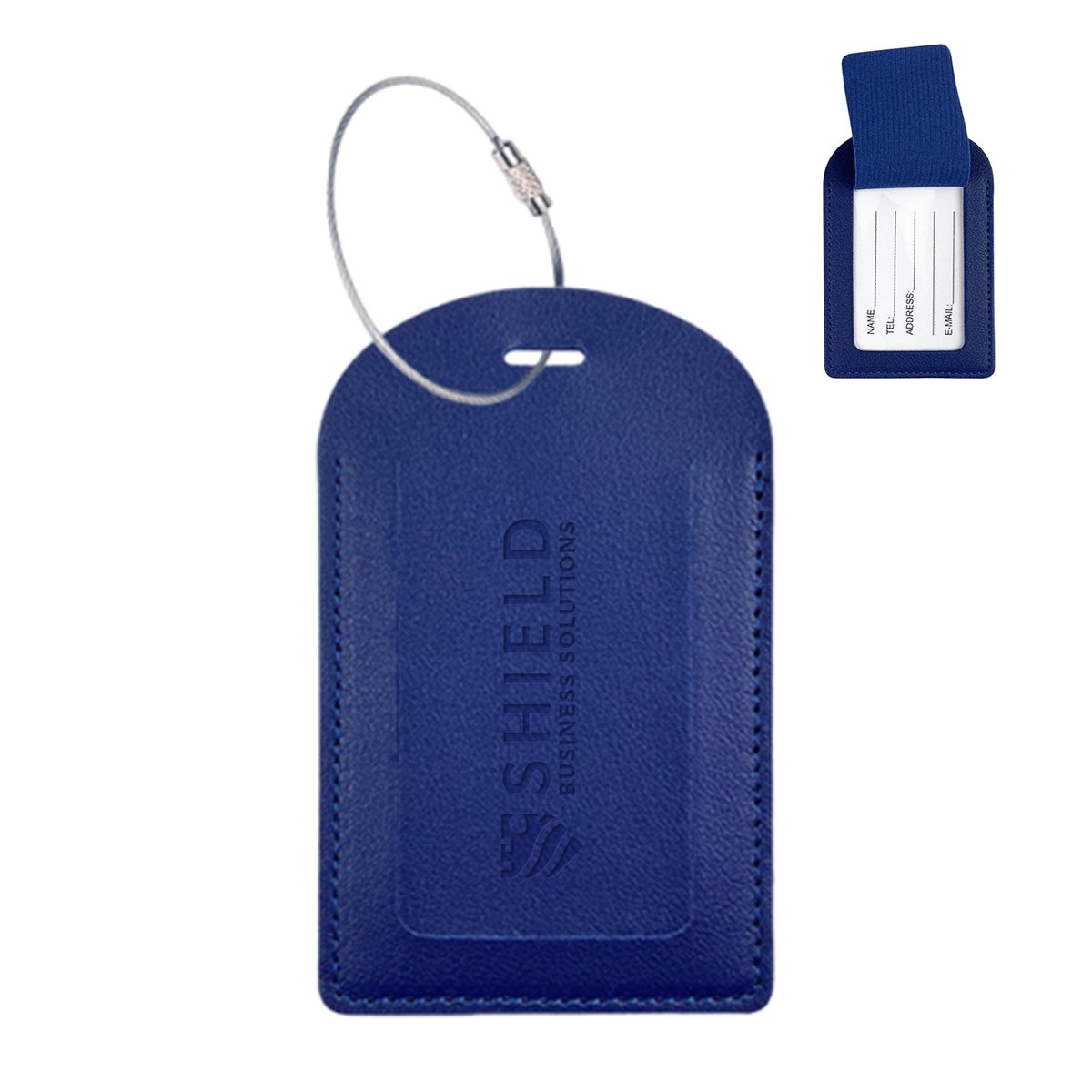 This luggage tag set includes an ID card that is easily visible through a clear display panel. The silver steel cable ensures the secure connection of your luggage.