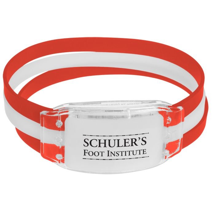 - Once turned on, the light features a fast flashing effect. The light matches the bracelet’s band color for a full-on branded look.