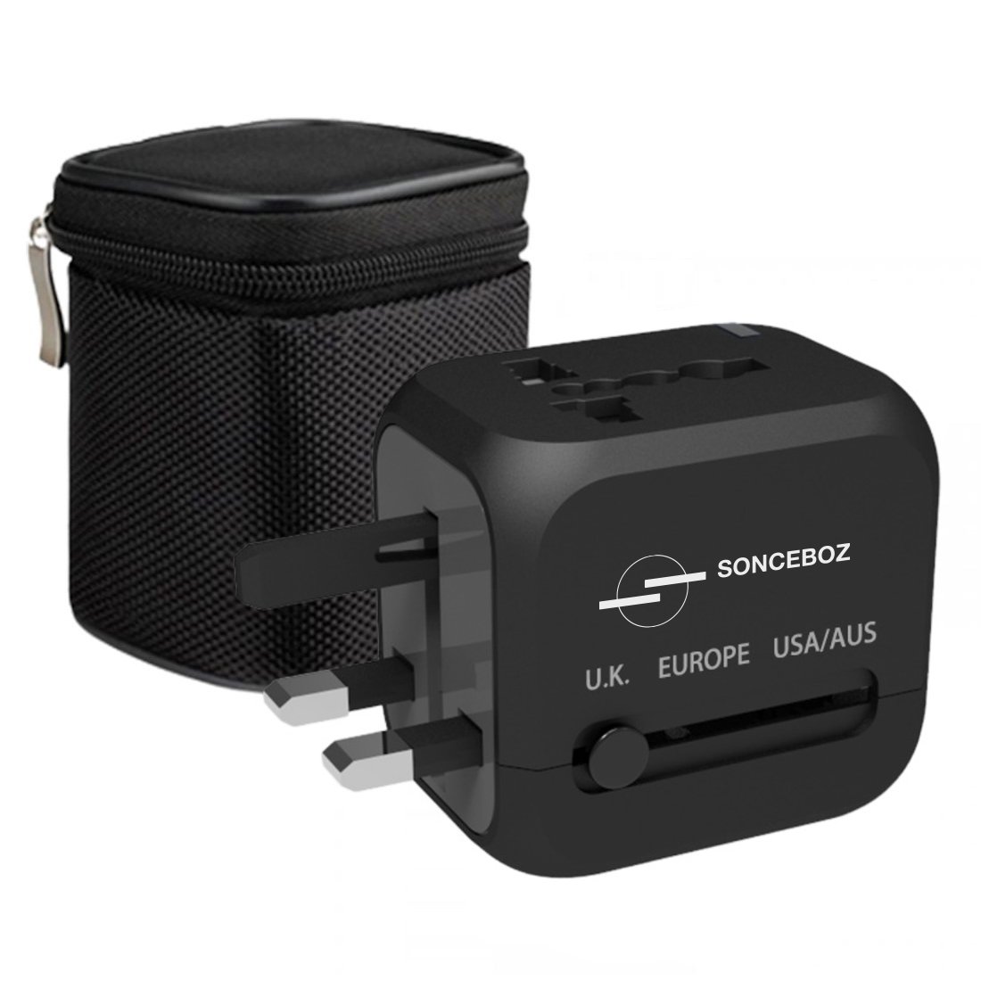 A small cube with EU, US, UK, AUS adapters and converter that also come with two built-in USB port and one Type-C for charging multiple devices at the same time.