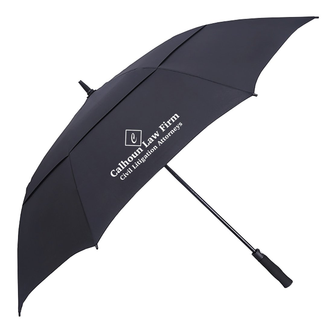 Go big with this 60″ custom vented auto open golf umbrella. Umbrellas feature wind-vent panels for windy conditions, and a 60″ arc for increased rain protection.