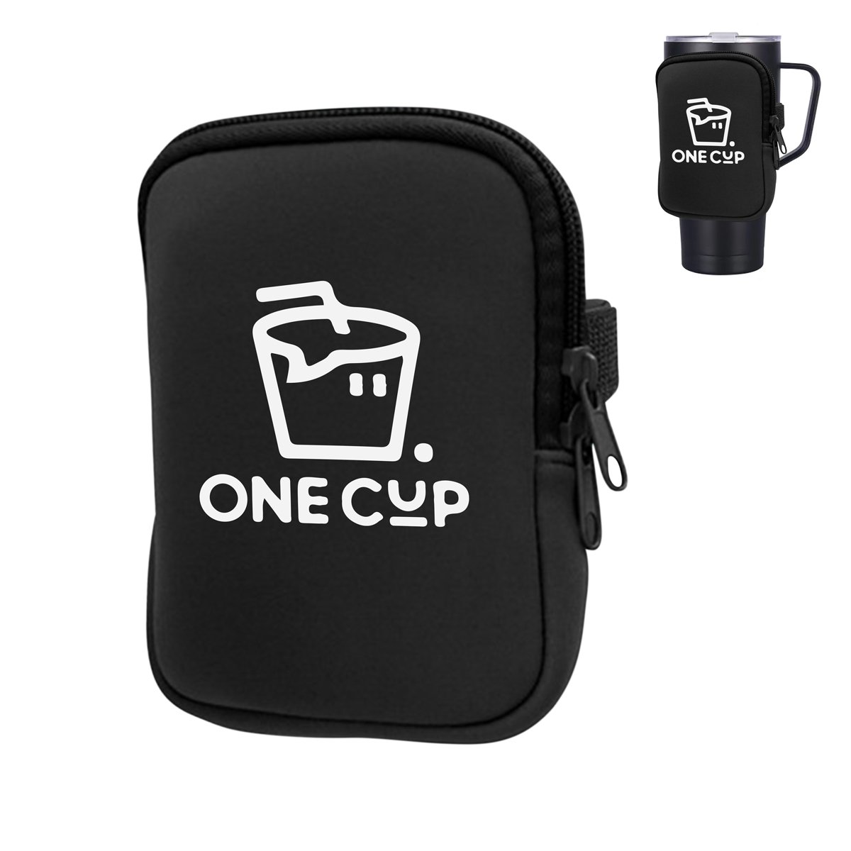 This unique storage bag easily attaches to tumblers and the zippered main compartment to keep your compact essentials secure. This pouch would be perfect for tradeshows, travel, other events!