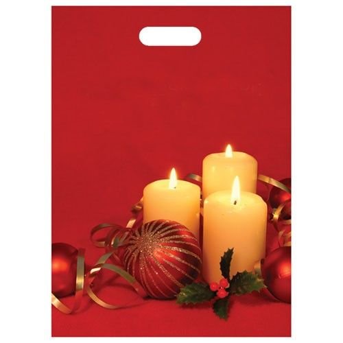 Make your custom plastic bags more durable by using patch handle style bags that are reinforced around the handles for additional strength.