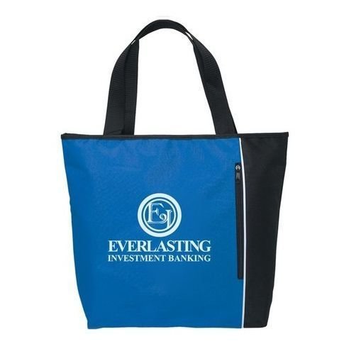 Made of 600d Polyester canvas, this custom tote bag provides plenty of space and zippered closures to keep items securely inside.