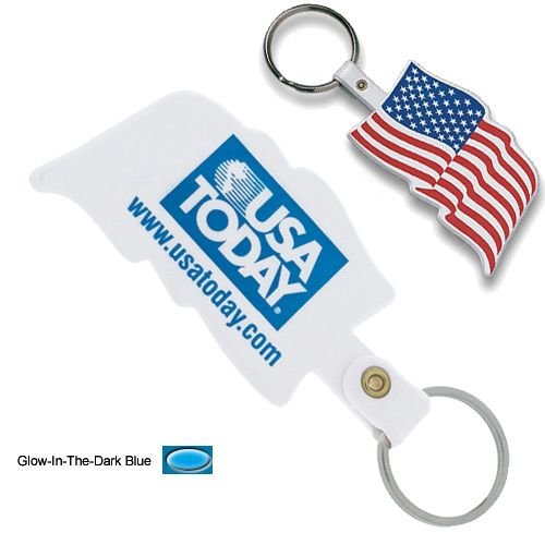 This custom key tag is available in White or Glow-in-the-Dark Blue (for an additional charge). Price includes the two color American Flag design on front; print is on the back. Additional print locations and/or methods may be available, contact us for details.